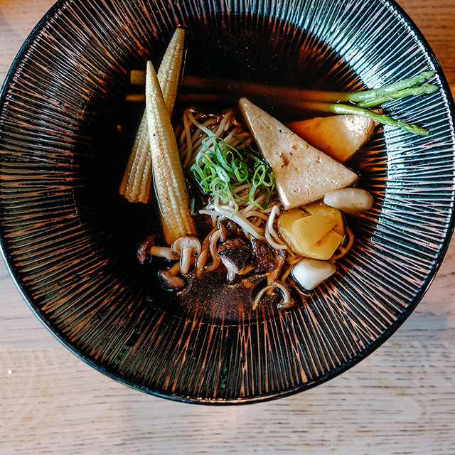 Tofu – beech mushrooms – thai asparagus – baby corn – shiitake – carrot
